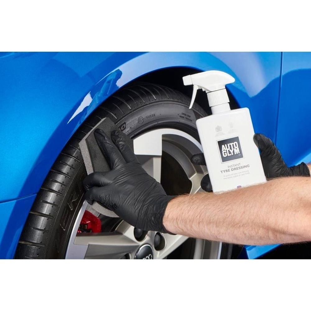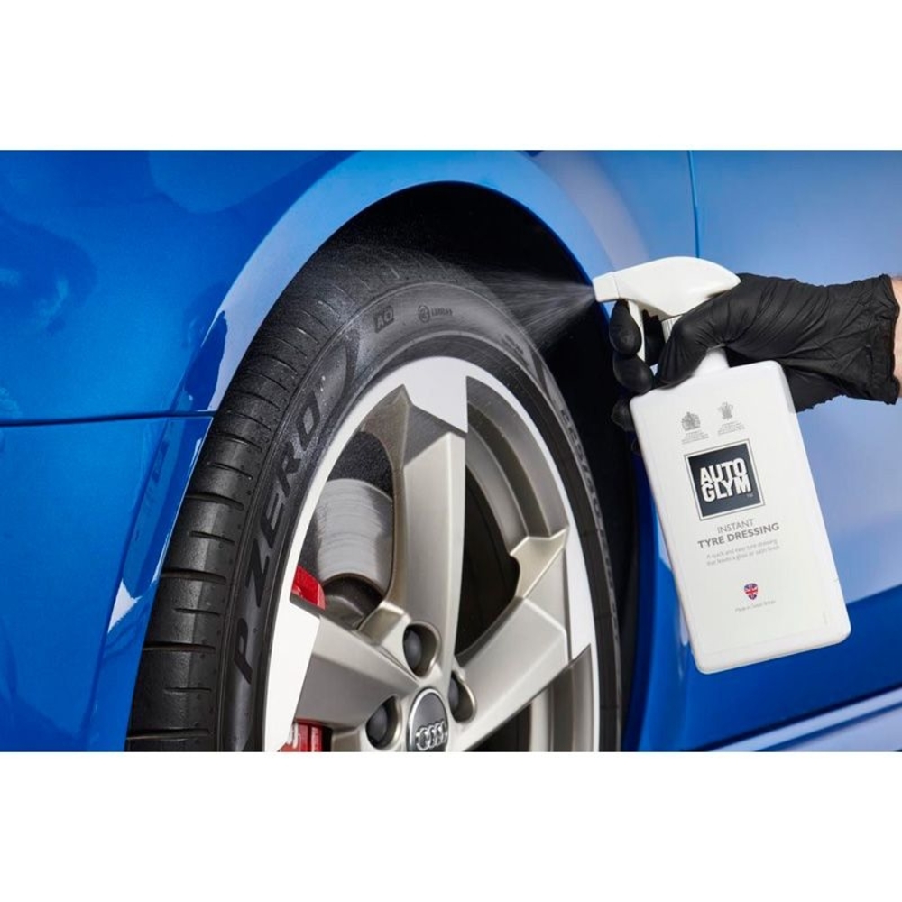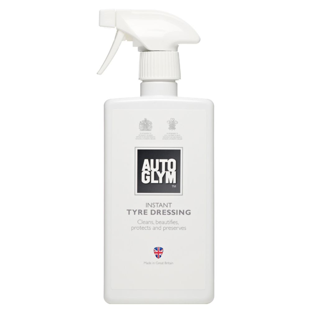 Autoglym Instant tyre dressing eenvoudig sprayen op natte of droge banden en laten drogen. Het mengsel van duurzame polymeren en emulgatoren zal het uiterlijk van uw banden compleet verfrissen en laat een nieuwe natuurlijke glans achter. Instant Tyre Dressing kan ook gesprayd worden op natte motoronderdelen, na reiniging geeft het een nieuw gezicht aan plastic en rubber onderdelen en beschermt tegen vocht en corrosie.