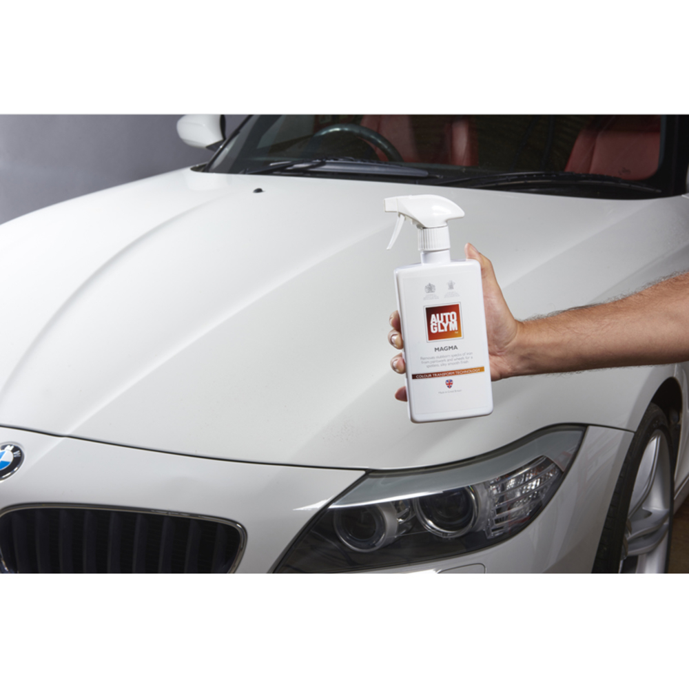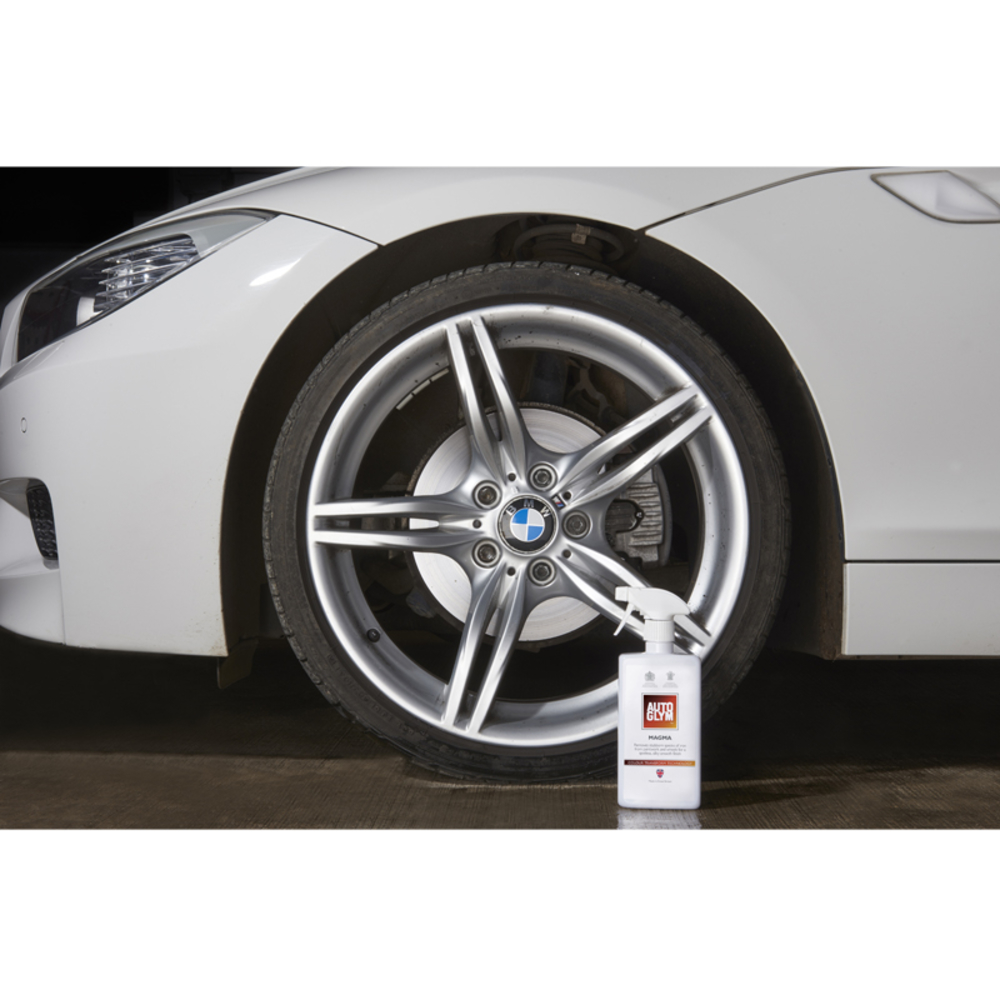 Autogym Magma werkt volgens de nieuwe 'color transform' technologie, het product reageert met de vastgekleefde metaaldeeltjes en verandert in een diep paarsrode kleur zodat je ziet waar de metaaldeeltjes zitten en deze worden losgeweekt waarna het met water wordt afgespoeld.