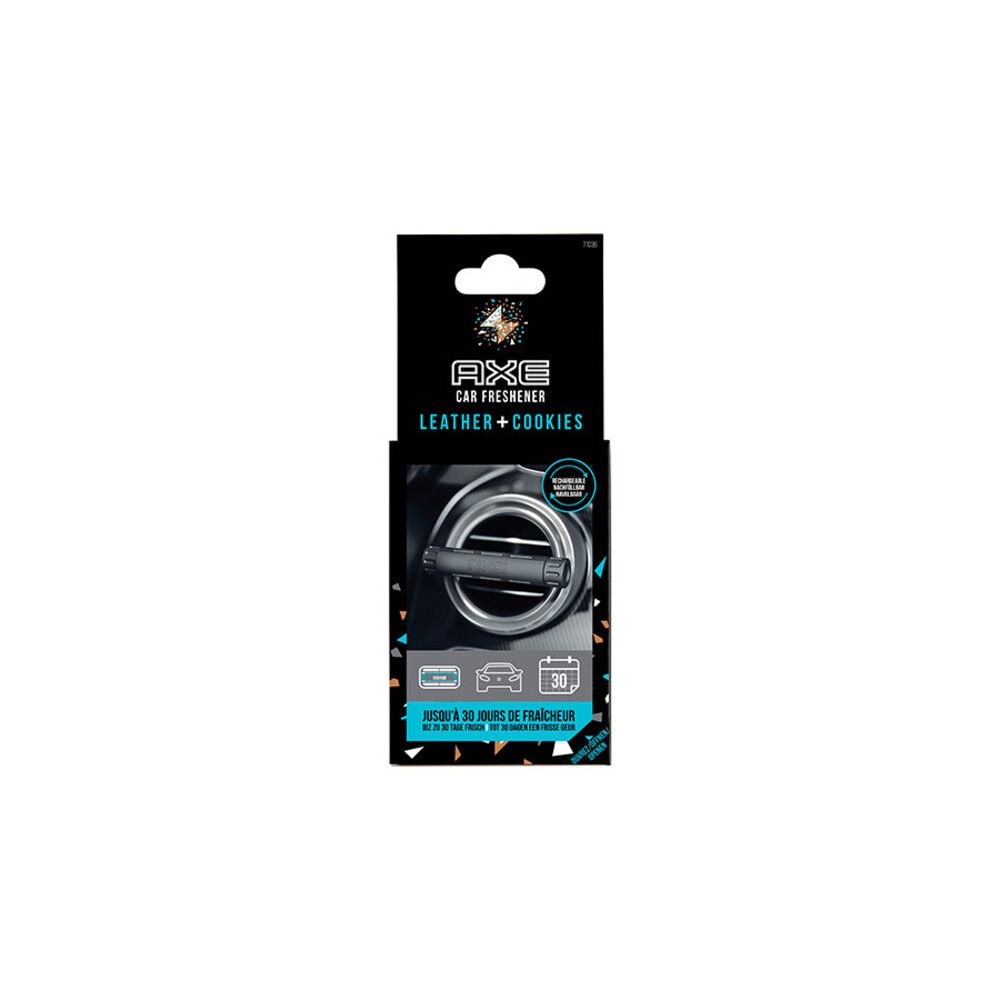 Verfris de auto met de bekende authentieke Axe geur Leather + Cookies. De Axe navulbare Vent luchtverfrisser verspreidt een onverwachte geur combinatie van leer en koekjes. De luchtverfrisser is te bevestigen in het ventilatierooster. De intensiteit van de geur is instelbaar. Met 2 Leather + Cookies patronen, werkt tot 30 dagen (2x15 dagen).