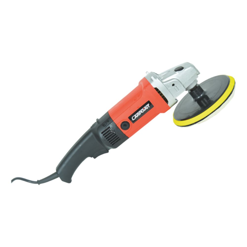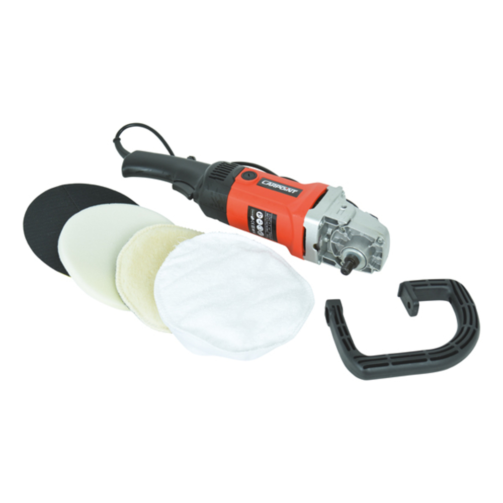 De haakse Carpoint poetsmachine met handgreep is ontworpen voor het effectief verwijderen van lakdefecten, oxidatie, lichte krasjes en swirls of het aanbrengen van een polish en wax. De pad maakt een draaiende beweging en de machine heeft 6 verschillende snelheden (polijstbewegingen: 600-30000/min) die met de draaischakelaar traploos instelbaar zijn aan de achterzijde. Lees de gebruiksaanwijzing welke snelheid het beste te gebruiken is voor de verschillende werkzaamheden.