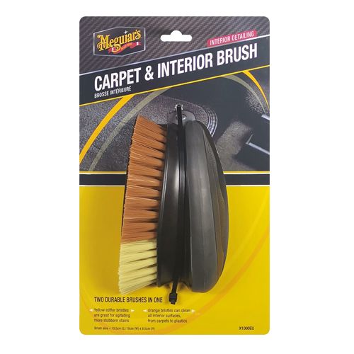 Twee borstels in één om het interieur mee aan te pakken! De gele borstelharen zijn stugger, hiermee kunnen hardnekkige vlekken aangepakt worden. De oranje haren zijn zachter en geschikt voor het schoonmaken van tapijt, bekleding en plastic onderdelen. De borstel ligt makkelijk in de hand en heeft een fijne grip!