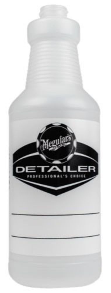 Lege fles van 945ml voor algemeen gebruik van de producten uit de Meguiar's Detailer lijn. De fles is voorbedrukt met Meguiar's logo en een veld waar je zelf op kan schrijven. Sprayer wordt niet meegeleverd en moet los besteld worden.