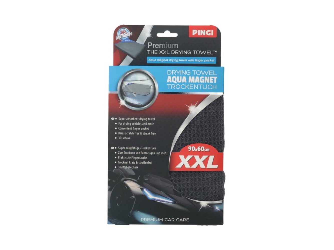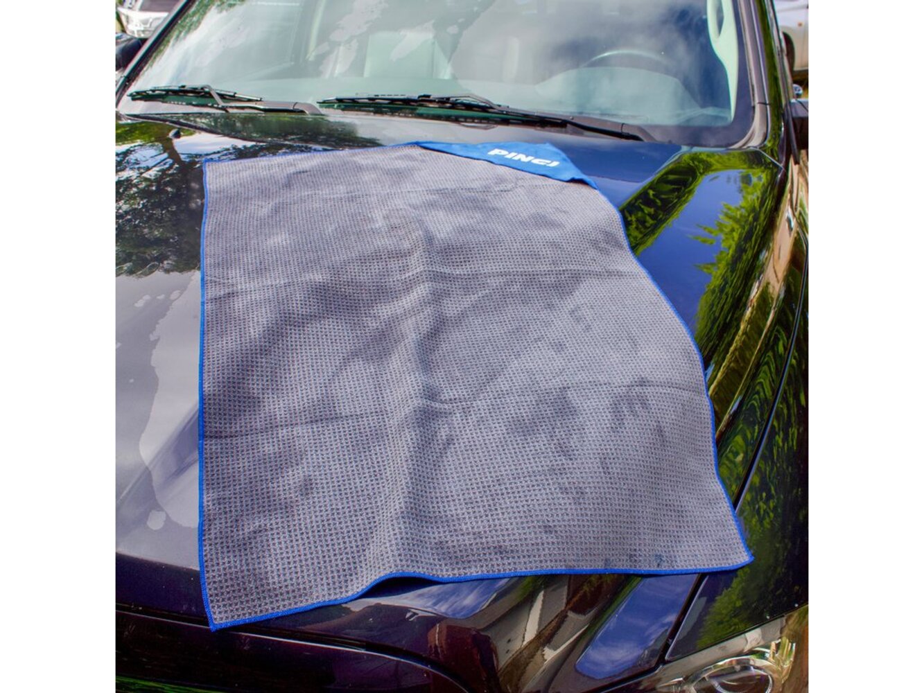Gebruik de Pingi XXL Drooghanddoek om uw voertuig na het wassen efficiënt te drogen. De handdoek is geschikt voor zowel glas als lakwerk door de microvezelstructuur. Gebruik na het wassen van uw auto eerst een wisser of zeem om de auto af te vegen en het meeste overtollige water te verwijderen. Gebruik vervolgens de XXL Drooghanddoek om de buitenkant van de auto volledig te drogen. Begin met de ruiten. Uw nieuwe handdoek is zeer geschikt voor het wervelvrij reinigen van ramen.