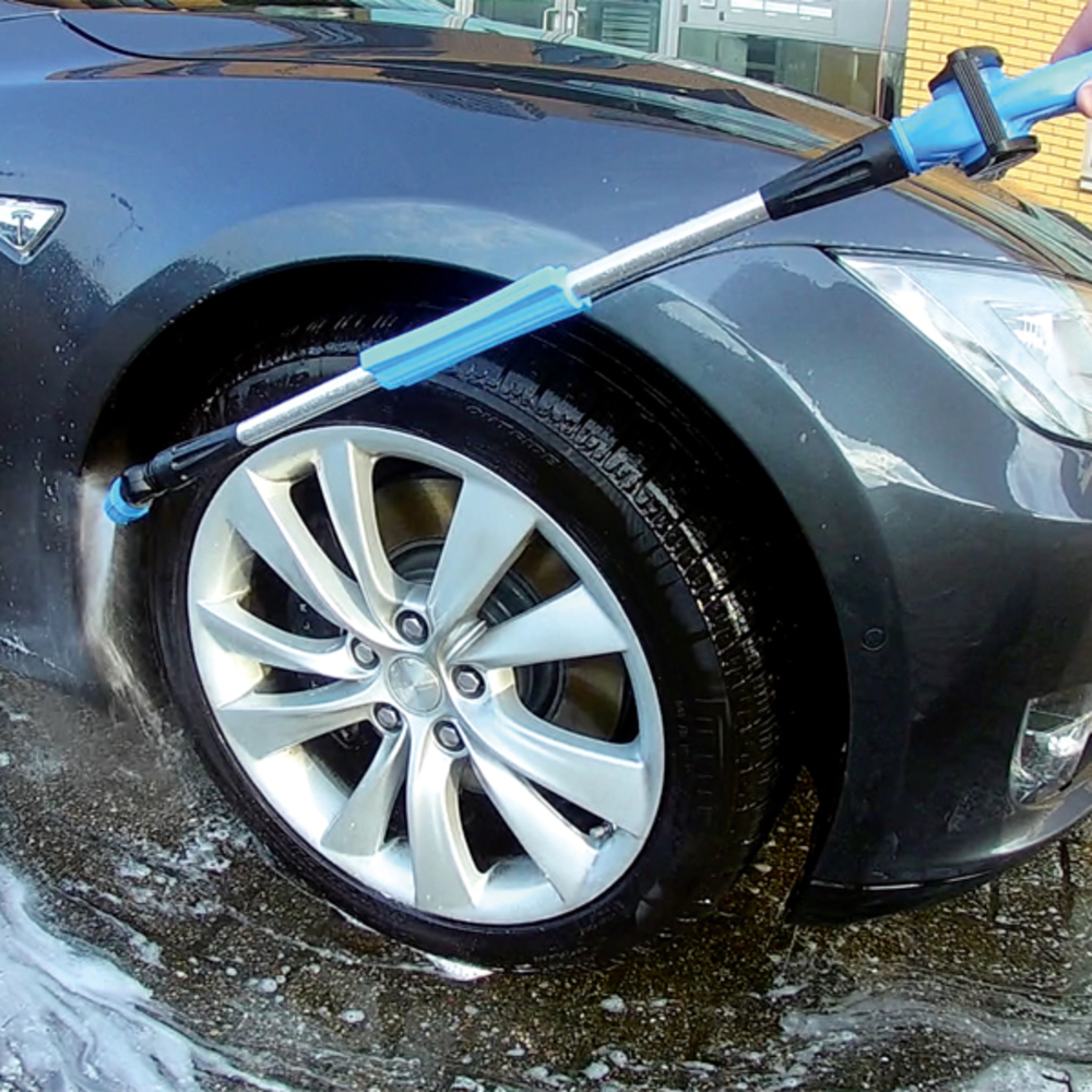 Hogedruk reinigings- en sproeigeweer in één. Voor iedere schoonmaakklus buitenshuis voor o.a. auto, caravan of tuin. Universele aansluiting, 3 verschillende sproeistanden en 180° draaibare kop. Met shampoo reservoir en - Active Flow - control-hendel.