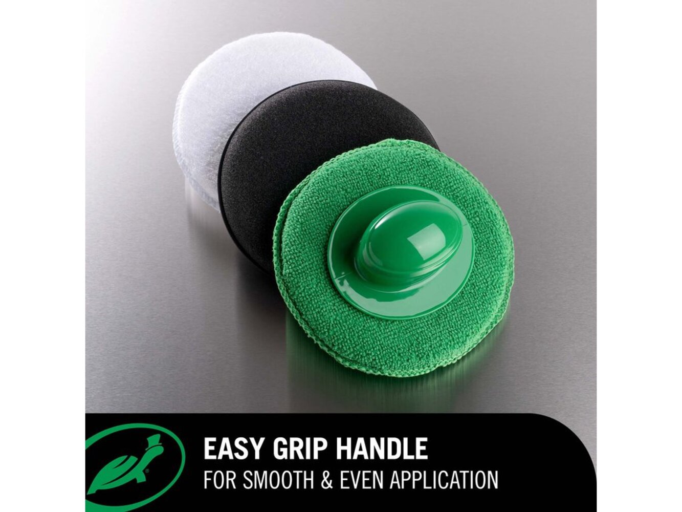 Of je nu de lak oppoetst, wax of coatings aanbrengt, de Turtle Wax Easy Grip Applicator Pads Set maakt elke klus eenvoudiger en efficiënter, zodat je jouw auto met minimale inspanning in topconditie houdt. De comfortabele handgreep geeft je optimale controle en helpt producten gelijkmatig aan te brengen voor een gladde, glanzende afwerking. Dankzij de met klittenband afneembare handgreep wissel je pads snel en moeiteloos. De Easy Grip Applicator Pads Set bevat drie pads – twee van microvezel en één van schuim – zodat je altijd de juiste pad hebt voor elke taak. Ideaal niet alleen voor lakverzorging, maar ook te gebruiken met leerreinigers, bandenglans en kunststofbeschermers.