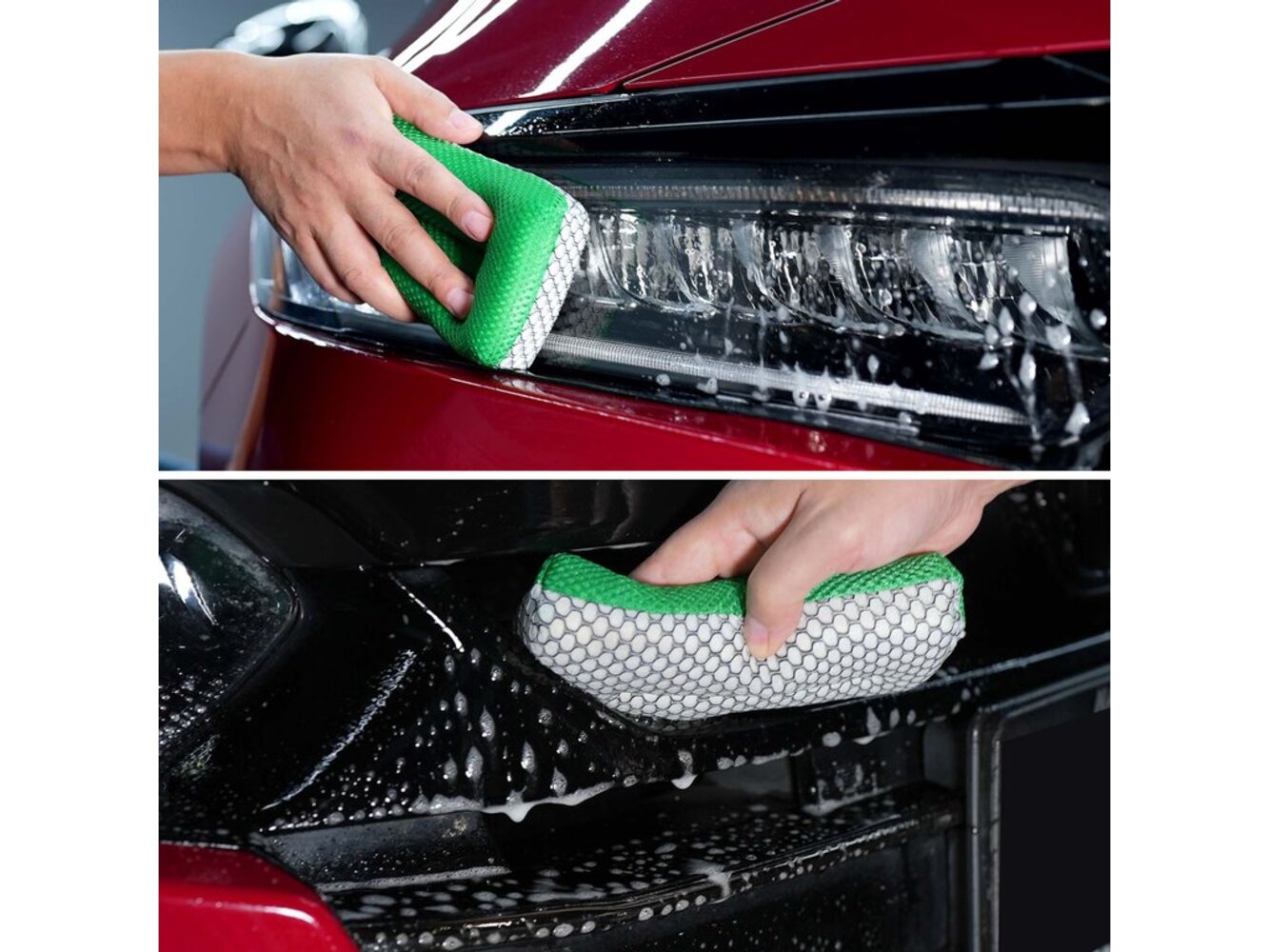 - Spons met dubbele oppervlakte verwijdert veilig insecten, teer en straatvuil