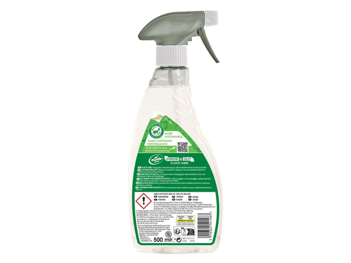 Turtle Wax Inside & Plastic Shine is een snel en gemakkelijk product dat reinigt, glanst en beschermt alle interieur en exterieur kunststof, banden. De formule bevat UVA & UVB remmers om een barrière te creëren die beschermt tegen de zonnestralen, dit voorkomt verbleken en barsten van zowel plastic als rubberen oppervlakken. Een sneldrogende formule waarmee de glansdiepte kan worden vergroot door extra lagen aan te brengen. In tegenstelling tot veel multi oppervlakte beschermers is de finish niet vet en streep loos, wat betekent dat het aanbrengen super eenvoudig en gemakkelijk is.