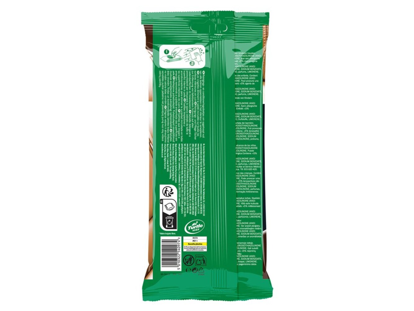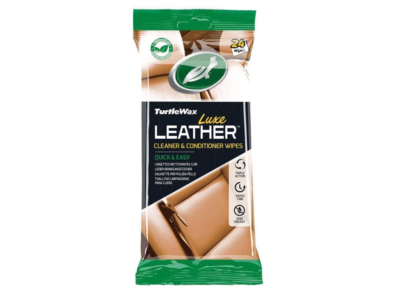 Turtle Wax Luxe Leather Cleaner & Conditioner Wipes zijn de snelle en gemakkelijke één stap oplossing voor het reinigen, conditioneren en beschermen van alle interieur leder, vinyl en rubbers. De triple-action formule reinigt door het verwijderen van opgehoopt en vuil. De natuurlijke oliën verzorgen en beschermen tegen verbleken en uitdrogen. Met een natuurlijk mat eindresultaat. 24 doekjes in hersluitbare verpakking om de vochtigheid te behouden.