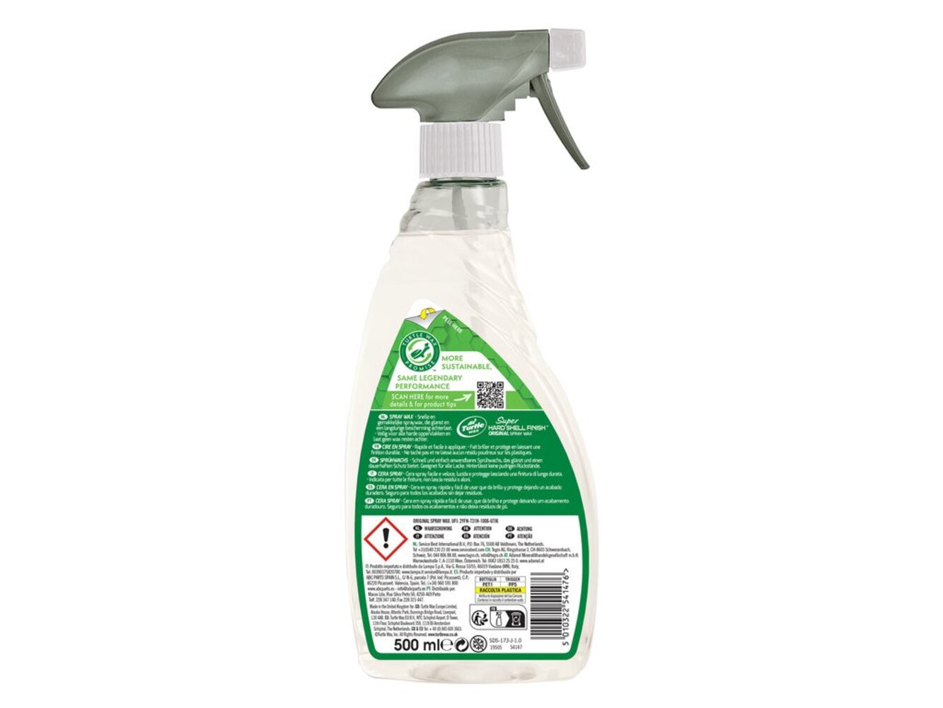 Turtle Wax Super Hard Shell Finish Original Spray Wax is geïnspireerd door de legendarische autowax waarmee het allemaal begon. Generaties later levert Super Hard Shell Finish Spray Wax de befaamde Hard Shell Finish in een snel en gemakkelijk sprayformaat voor de eisen van een nieuwe generatie autoliefhebbers! Original Spray Wax is duurzaamheid verrijkt met carnauba voor een langdurige eindresultaat en een super glad oppervlak dat wekenlang water parelt. Makkelijk in gebruik; geen hard poetsen, komt er super gemakkelijk af, werkt zelfs in direct zonlicht of vochtige omstandigheden. Turtle Wax Super Hard Shell Finish is veilig voor alle afwerkingen en laat geen poederachtig residu achter.