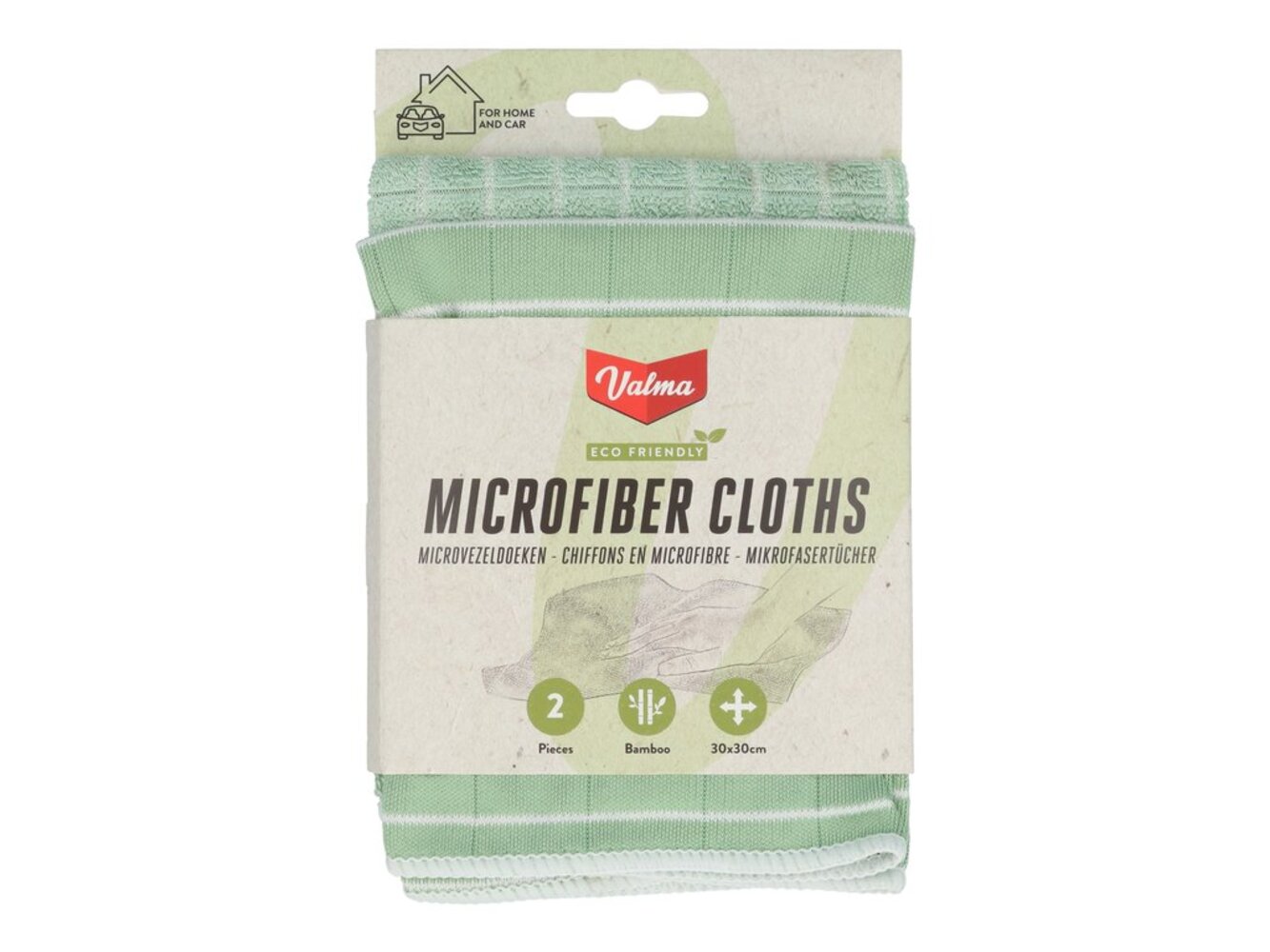 Deze set met twee Valma ECO Bamboe microvezeldoeken combineren uitstekende reinigingsprestaties met duurzaamheid. De vertrouwde microvezeldoek nu gecombineerd met 20% milieuvriendelijk bamboevezel. De set bestaat uit twee verschillende microvezeldoeken, één microvezeldoek speciaal geschikt voor glas. Deze bamboe microvezeldoek is superzacht en absorberend en ideaal voor het streep loos reinigen van glas. De andere microvezeldoek is geschikt voor iedere andere schoonmaakklus van auto interieur tot meubels en voor keukens en badkamers. Deze zware kwaliteit bamboe microvezeldoeken hebben een afmeting van circa 30x30cm en zijn een prima milieuvriendelijk keuze.