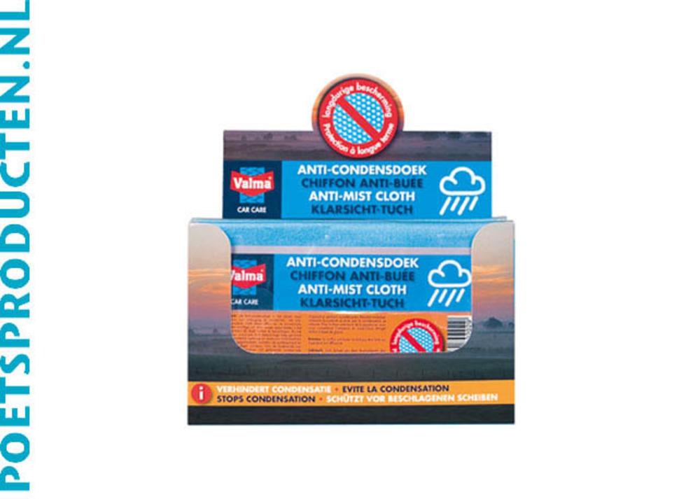 Valma anticondensdoek zorgt ervoor dat uw autoruiten aan de binnenkant langer bestand zijn tegen condensvorming. Voor een schoon en veilig zicht. Onmisbaar in de wintermaanden.